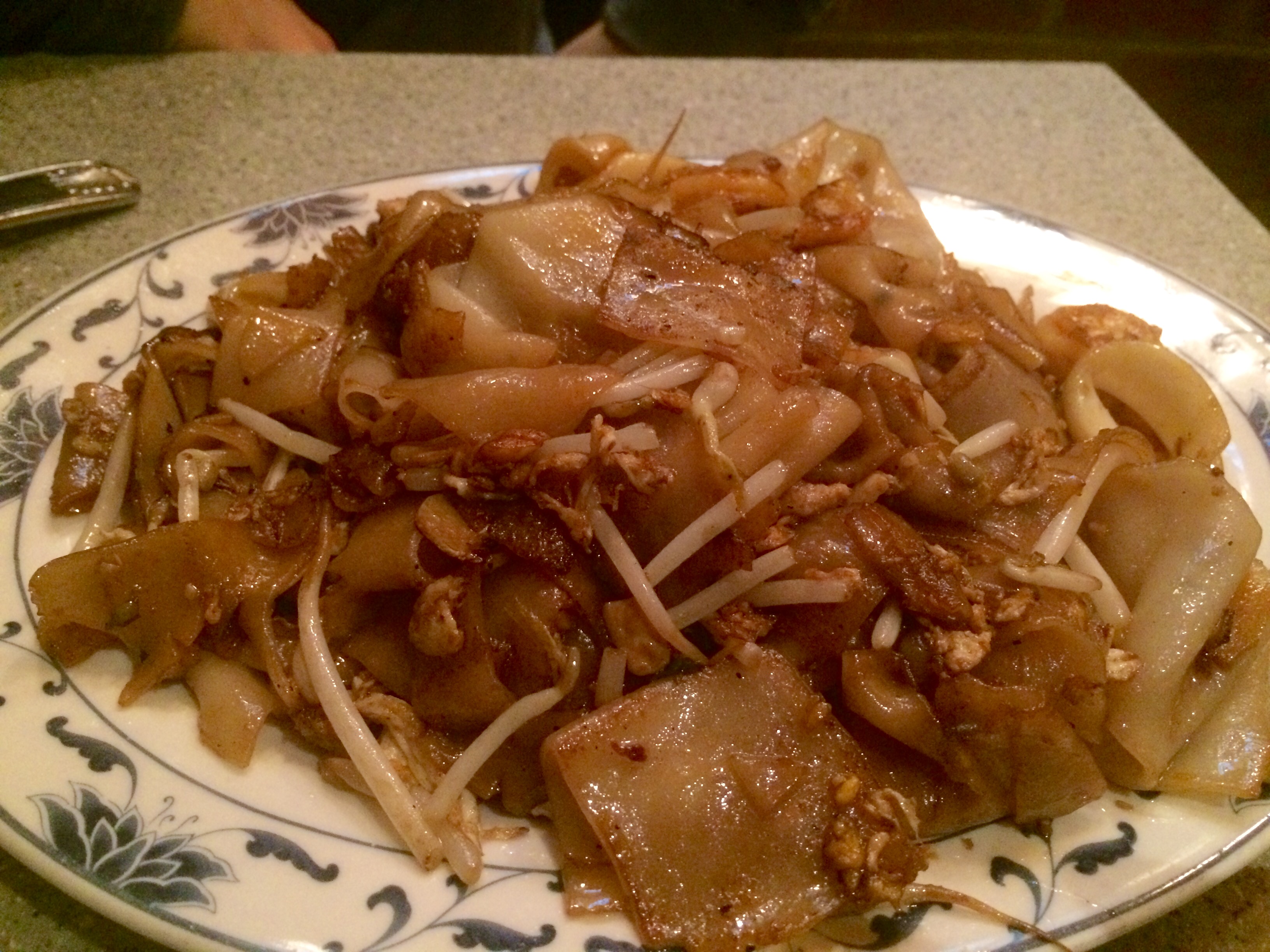 The next dish to come to the table was the Chow Kueh Teow ($8.95)–flat rice noodles with shrimp, squid and vegetables–a Malaysian specialty. The plate arrived with a big portion of chow fun-esque noodles, but the noodles were more angular with a firmer texture, though not in a bad way. The delicate baby shrimp were cooked perfectly, and the squid was not overcooked and retained its meatiness, but seemed to be an odd choice in the dish. Scallops might have fit in better. The noodles lacked enough spice or tanginess to elevate the squid. Luckily there was some sambal (a very spicy Asian chili paste with a bright red color, sometimes made with the addition of garlic, lemongrass or lime) on the table to mix in.