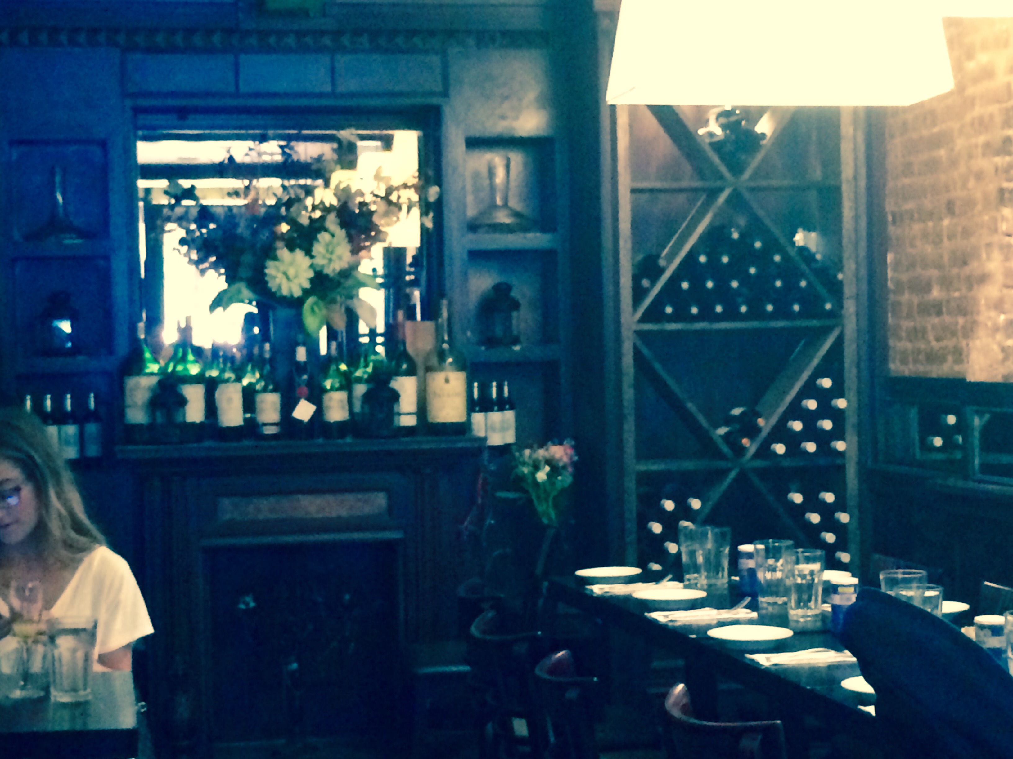 The restaurant presents itself in a simple, French bistro style with exposed brick, redone hardwood floors, and a narrow but still spacious dining room on one side and a bar on the other. There was relaxing jazz music playing—they actually have live jazz on Sunday nights. Large wine cabinets in the bar and restaurant areas were prevalent, with a simple table setup in the dining room.