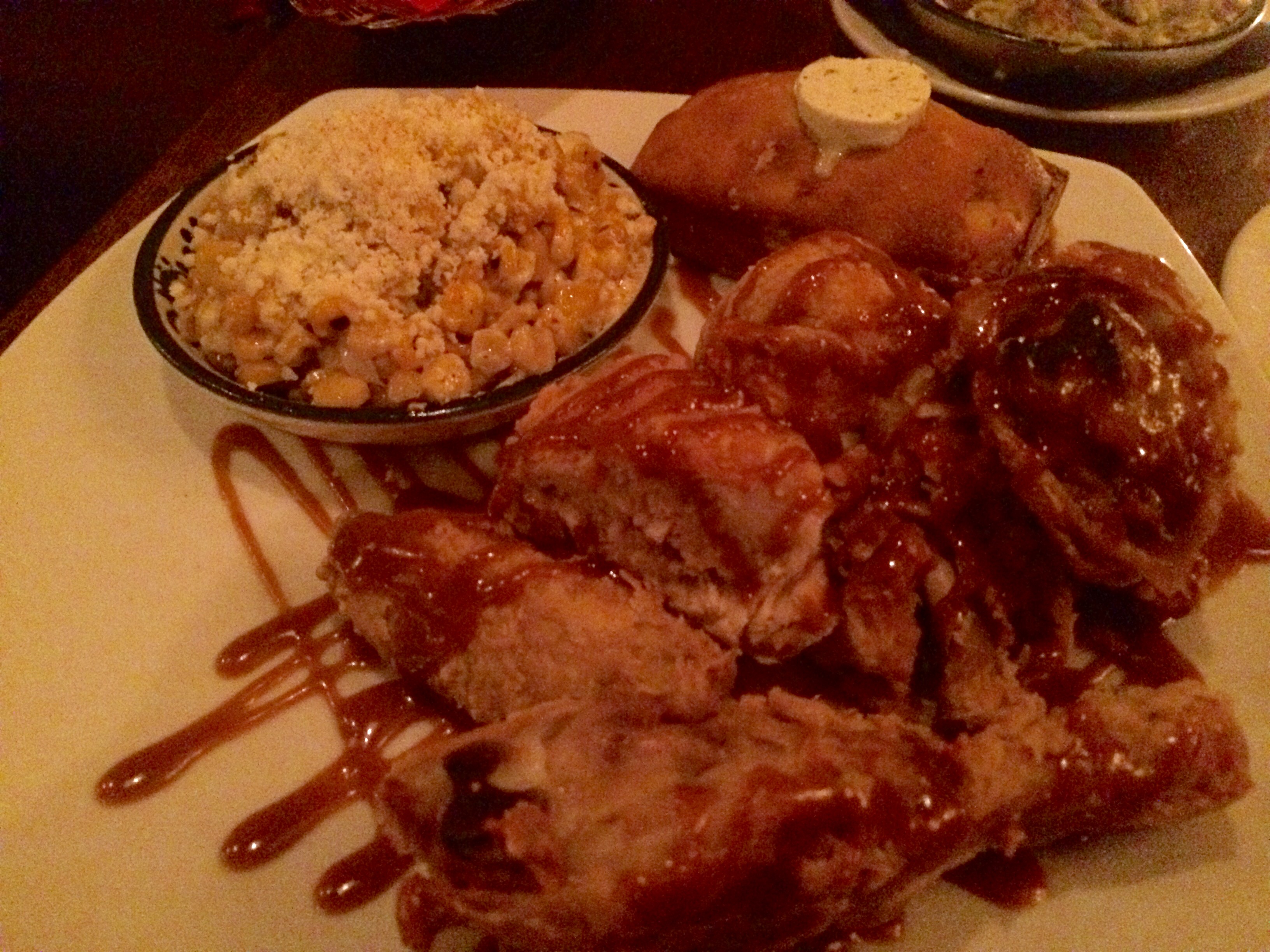 The Churros, which are always a personal favorite of mine, were fried perfectly–crispy on the outside and still eggy in the middle–and lightly dusted with cinnamon. The lack of sugar on the Churros was actually a welcome surprise, since the other desserts were uber sweet. They were served with dark chocolate and dulce de leche dipping sauces. Only thing I would change was I wish there was a little more sauce–I’d drink it from the container lol.