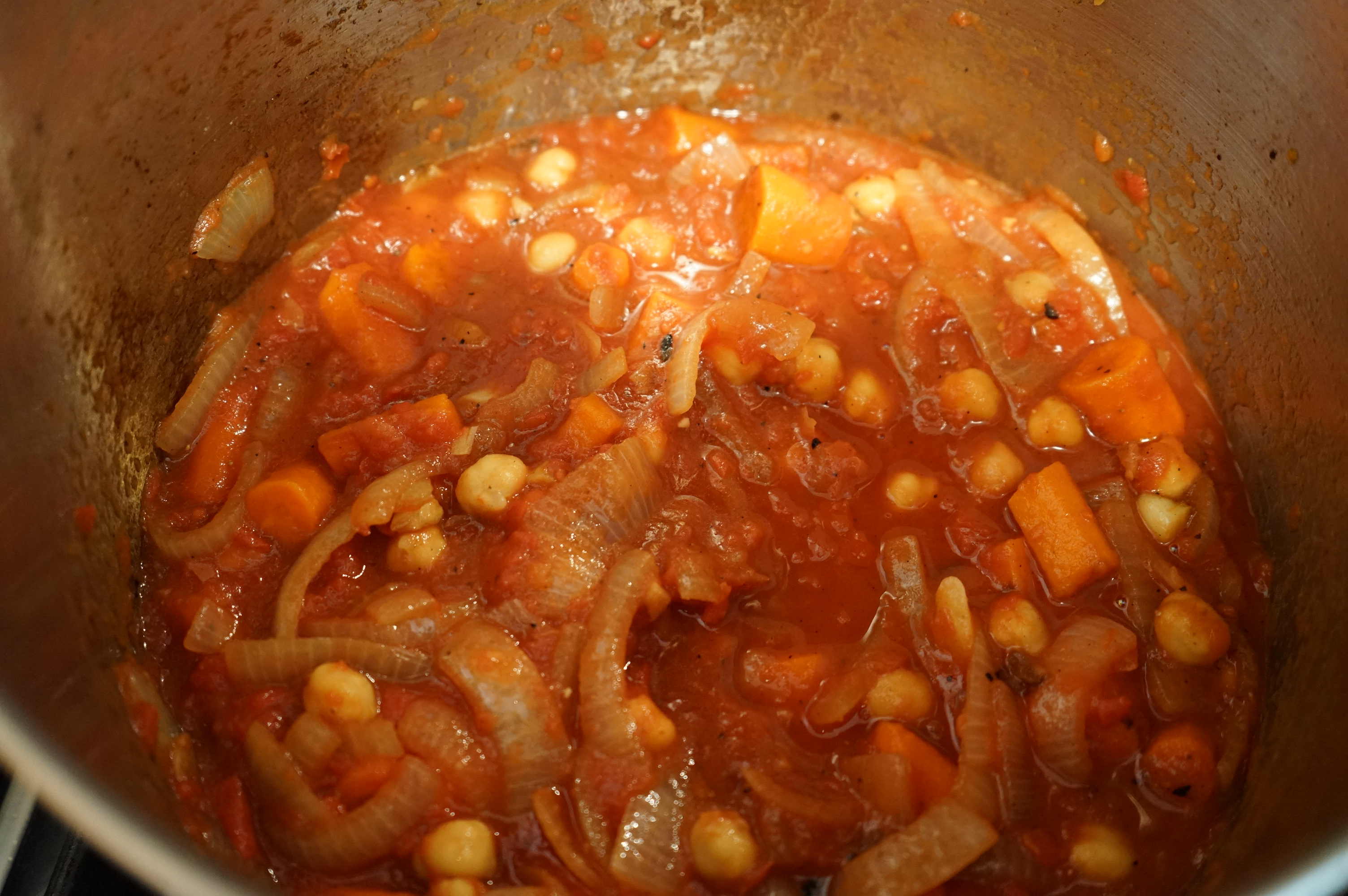 - Cook for a few more minutes, and then add the chickpeas