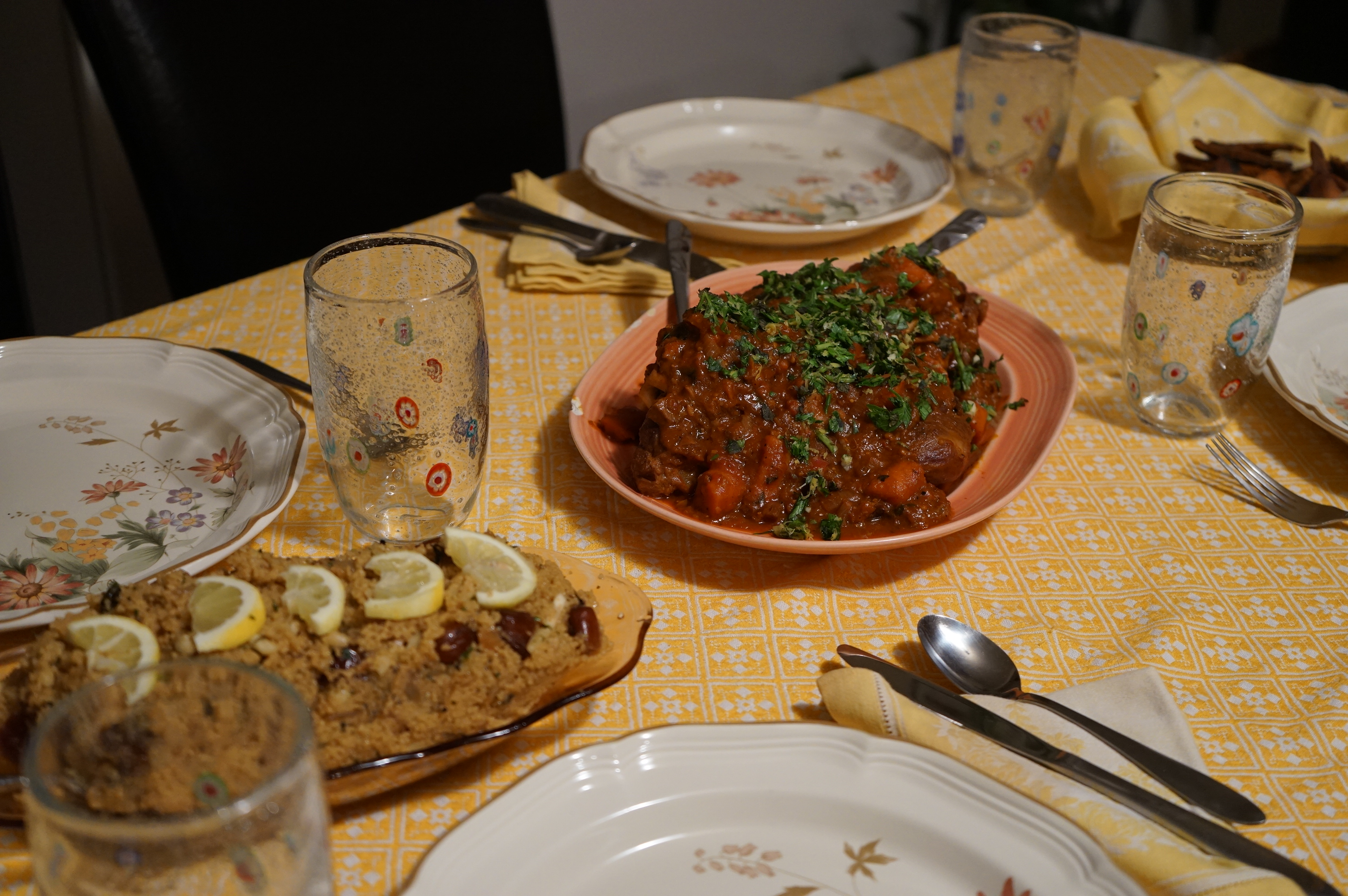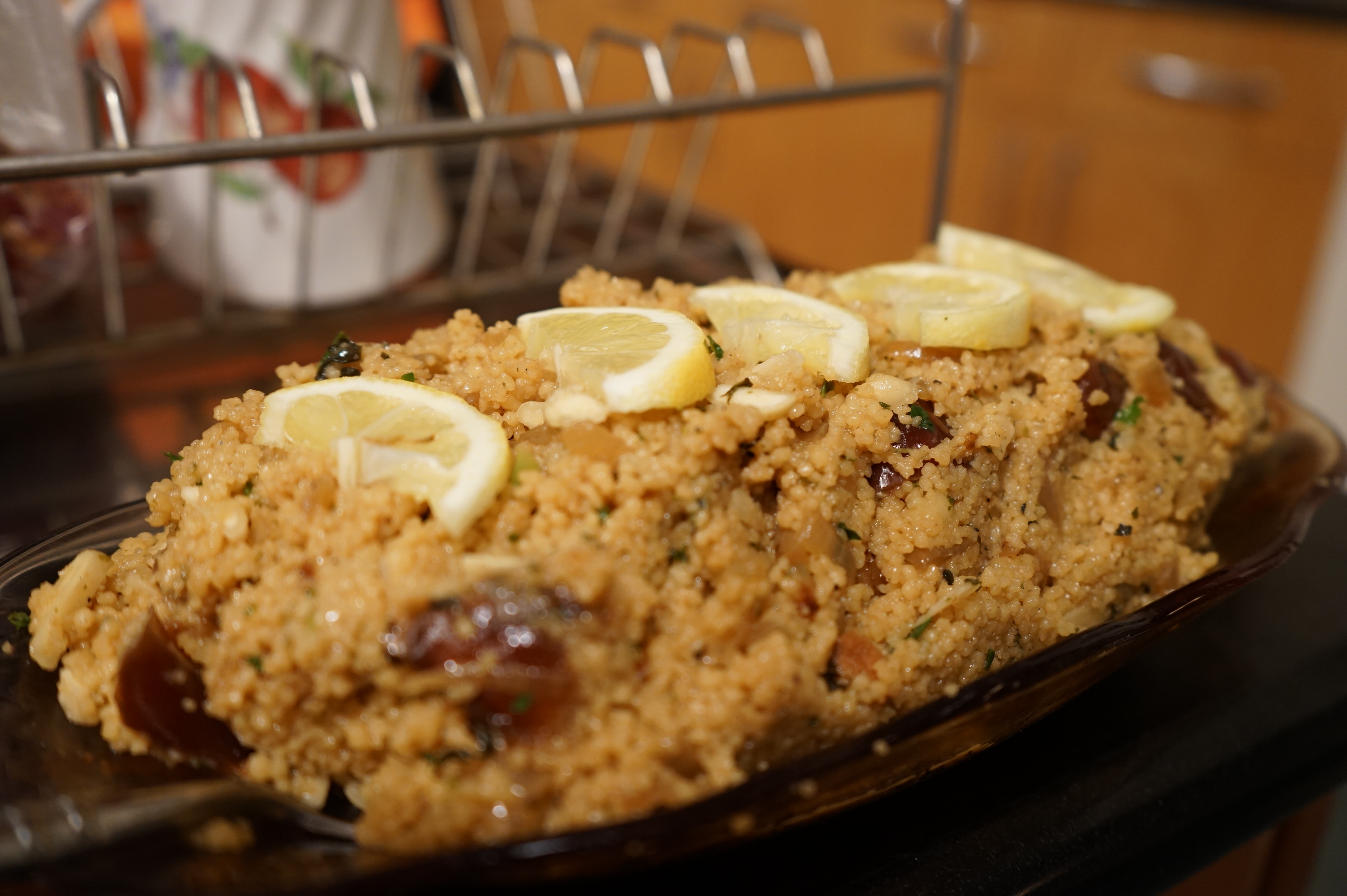 - Serve the couscous garnished with some lemon slices and a squeeze of lemon over the top