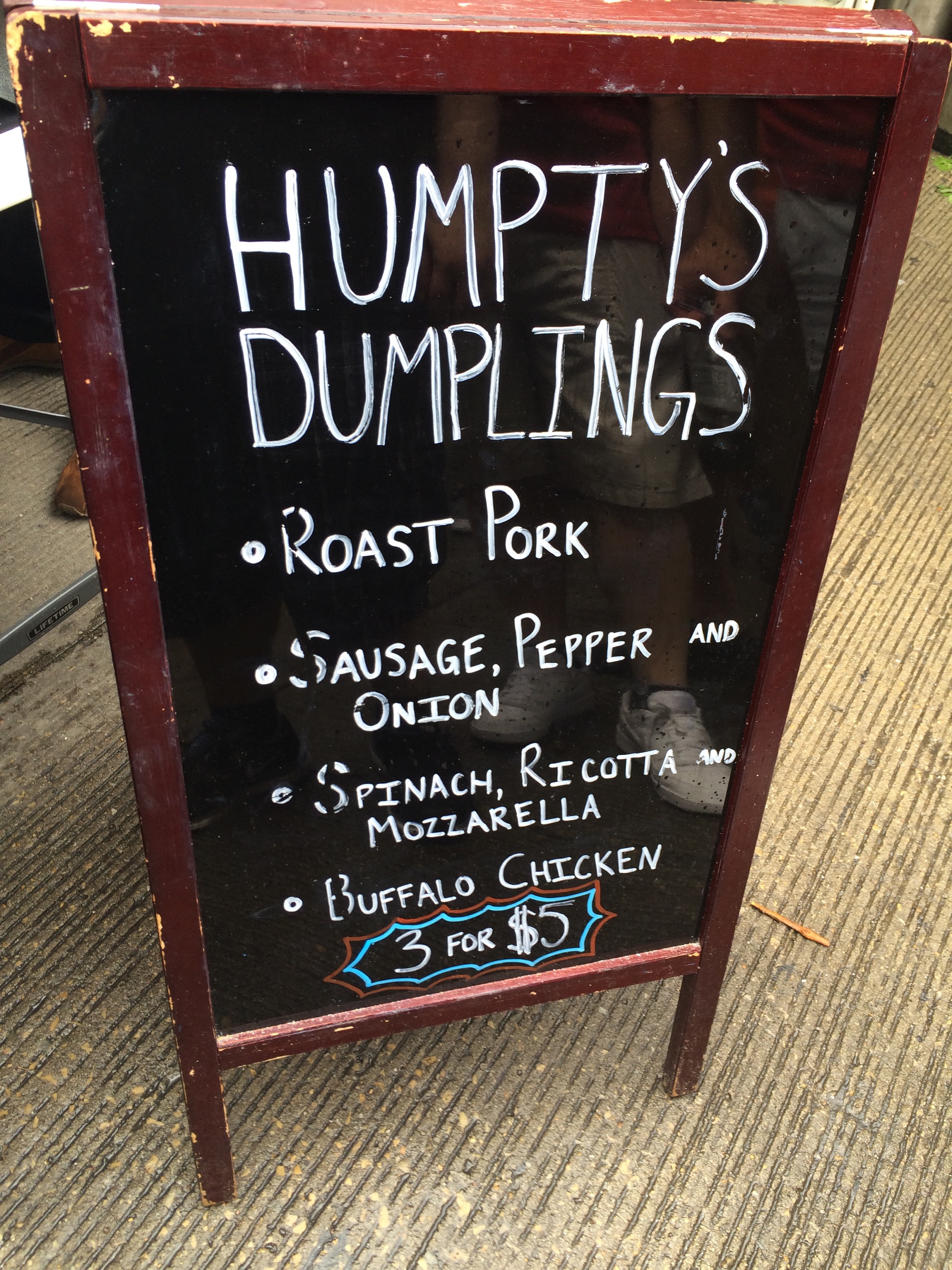 My next stop was at the Humpty’s Dumplings food truck for some Italian themed dumplings (3 for $5). I chose the sausage, spinach and pork. The pork dumpling went great with the tomato sauce and tasted almost like a mini-Stromboli. The spinach dumpling was super moist and reminded me of a spinach purse appetizer. I thought the pork dumpling would have ground pork, but turned out to be be stuffed with chopped up pork and spinach from a roast pork sandwich. It was my favorite of the three and super appropriate for Philly. The skin on the dumplings was not too crispy, and almost like puff pastry. They were good for walking and definitely unique.