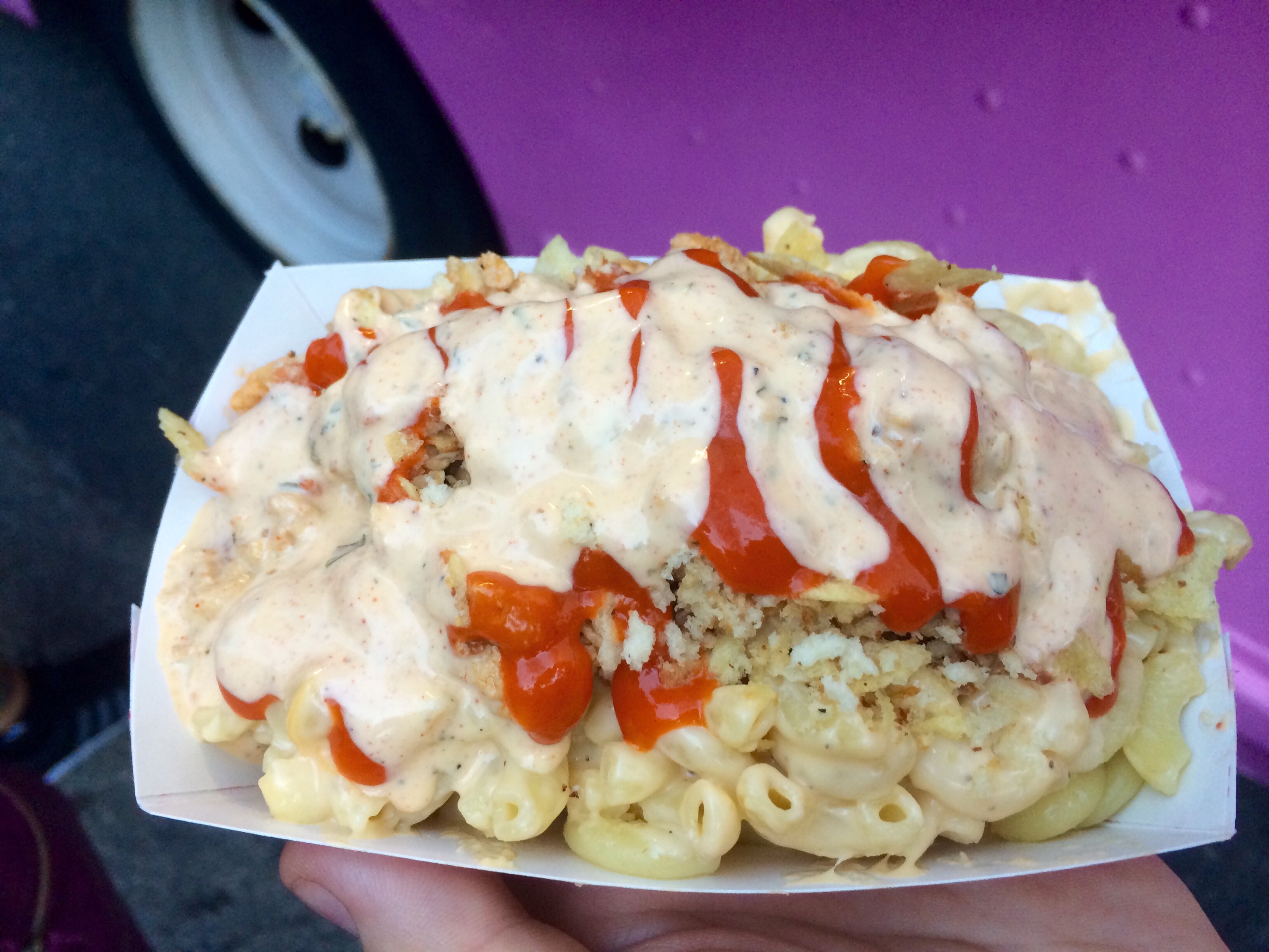 The Mac Mart Cart was (finally) calling our name. This truck specializes in everyone’s favorite comfort food, max ‘n cheese. We had to save this for towards the end since it’s so heavy, but also so delicious. It was the creamy noodle dish of my dreams. The Buffalo Mac and Cheese ($8) features their classic mac is topped with spicy buffalo chicken that is chopped into small pieces, tangy buffalo sauce, creamy Buttermilk Ranch sauce and a Parmesan-Panko crust. The portion itself was also huge and easily fed two people.